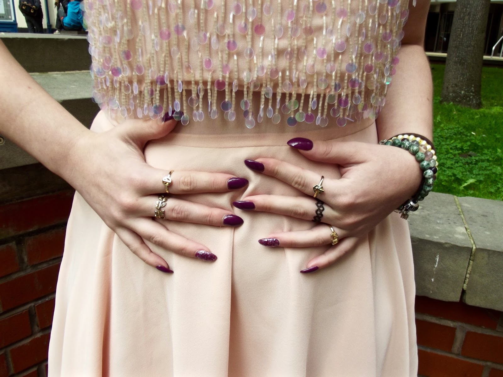 But anyways, i thought this dress was perfect the awards. My style is quite dressy anyway, and i have no reason to get dressed up usually so i took this opportunity to make myself feel pretty. Mum helped me with my hair and i absolutely love it in this up-do bun style. The top of this dress is sequins, which is just amazing, and the rest is a crepe material. It creases really easily, but is so comfortable to wear. It's got an easy little zip up the back in the same colour as the dress so it isn't really that noticeable. I love this nudey pink colour. Granted, it would look better on me if i had a tan, but i don't and i still love it. It was quite cold in Leeds so i wore this blazer i have from Boohoo on top, which kept me a bit warmer, but also went really well with the outfit. My shoes are ankle strap, pointed toe, black flats and i love them. They're comfortable to wear and go with majority of outfits and i think they look great with this.